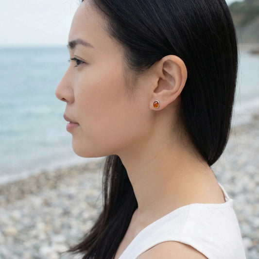Boucles d'oreilles ambre cognac naturel en argent rhodié 925