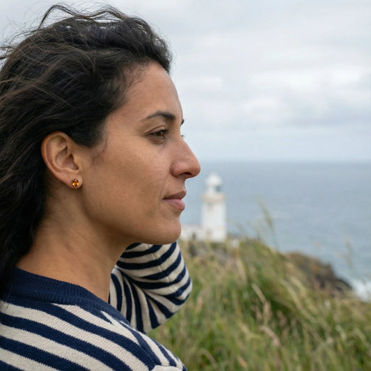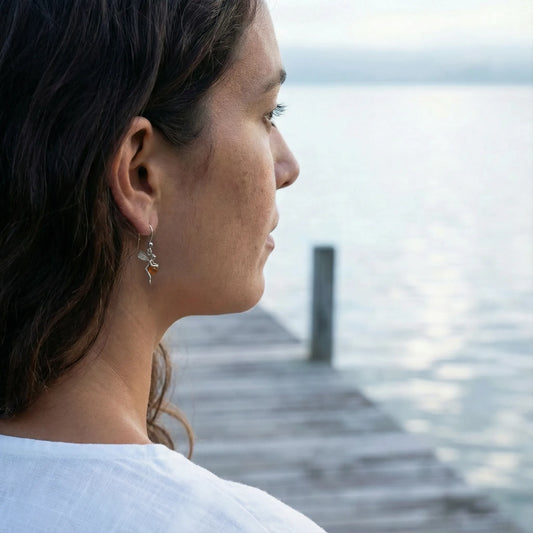 Boucles d'oreilles fée ambre cognac naturel en argent rhodié 925
