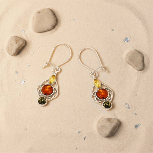 Boucles d'oreilles ambre multicolore pendantes modèle 16MR