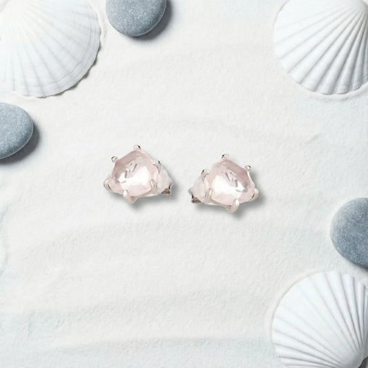 Boucles d'oreilles cœur quartz rose en argent rhodié 925