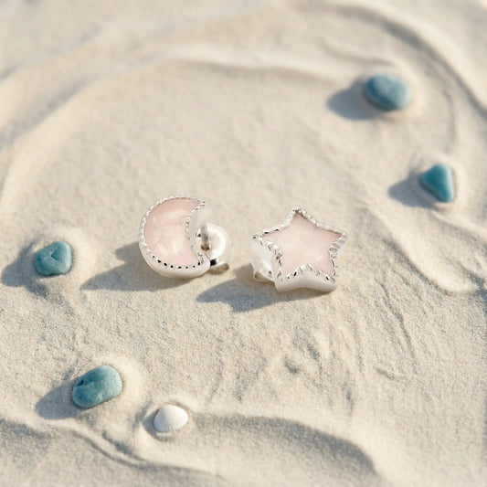 Boucles d'oreilles étoile lune quartz rose argent rhodié 925