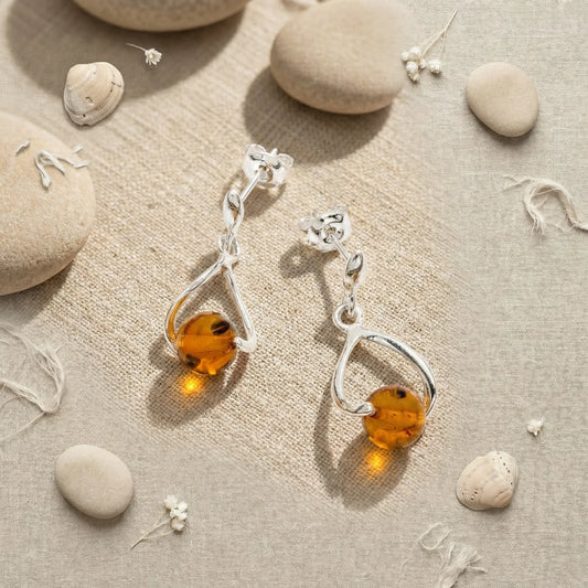 Boucles d'oreilles ambre cognac longues modèle DK6R argent
