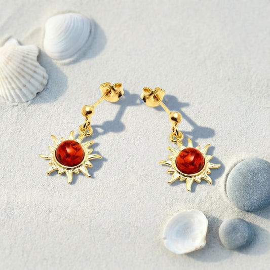 Boucles d'oreilles ambre cognac ronde en argent doré 925