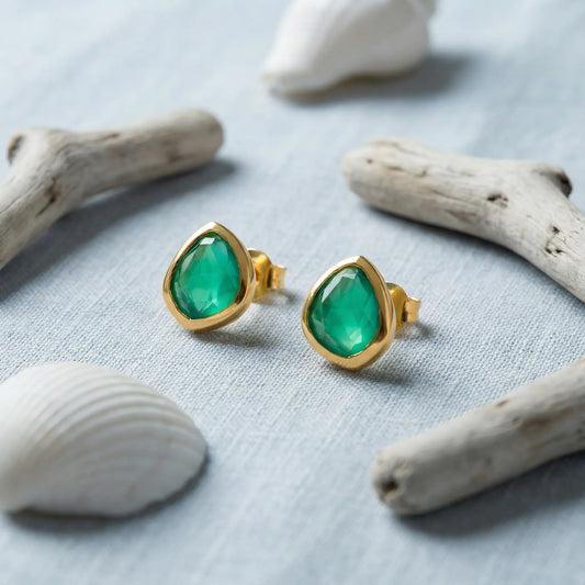 Boucles d'oreilles onyx vert irrégulière en argent doré 925