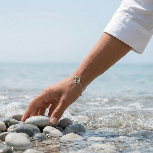 Bracelet arbre de vie ambre multicolore en argent rhodié 925
