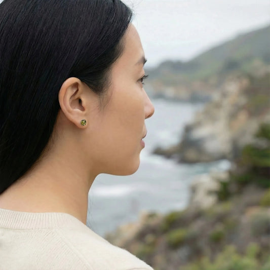 Clous d'oreilles ambre vert naturel rond en argent rhodié 925
